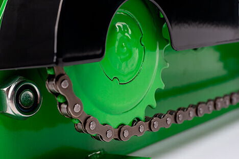 Цепь - надежное и эффективное решение. КПД такой передачи 97%. Усилие передается практически без потерь. Нагрузка на валы минимальна. Цепь не проскальзывает.
